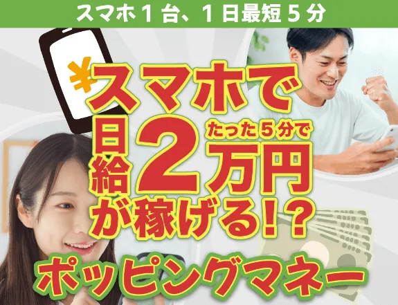 ポッピングマネーは1日たった5分で2万円が稼げるスマホ副業?