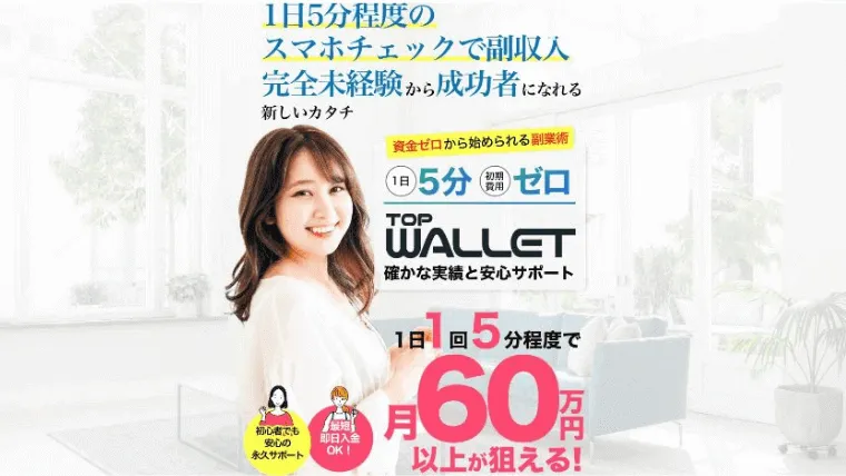 TOP WALLET(トップウォレット)はスマホチェックで月60万円以上が稼げるスマホ副業?怪しい副業で稼げない?